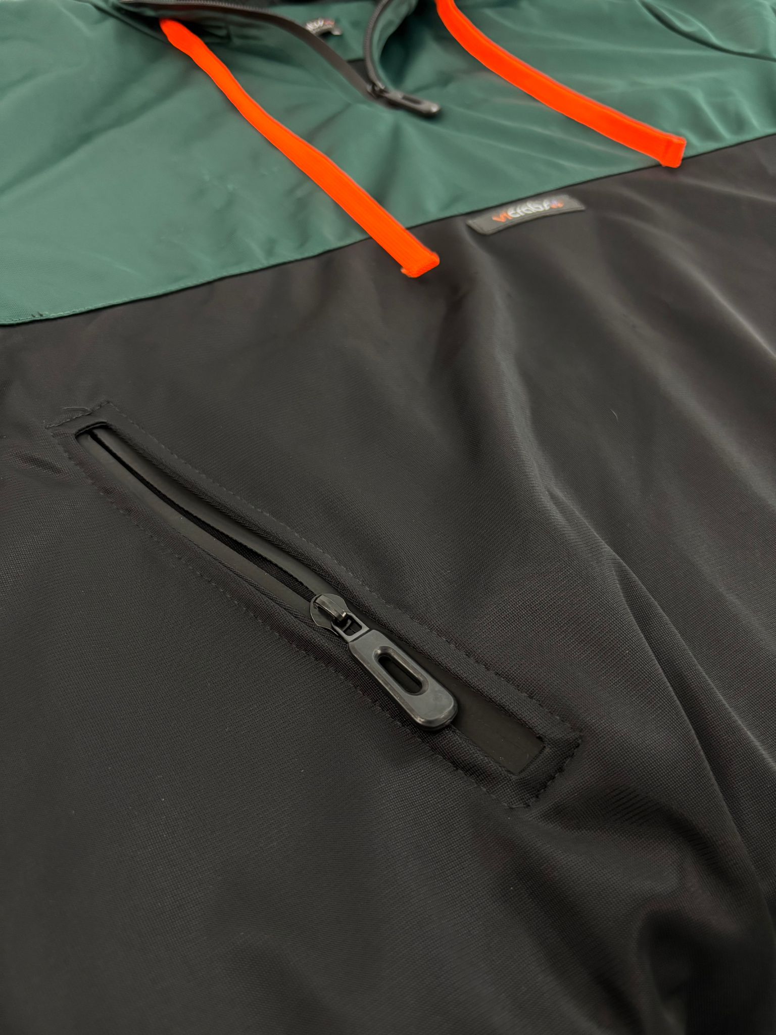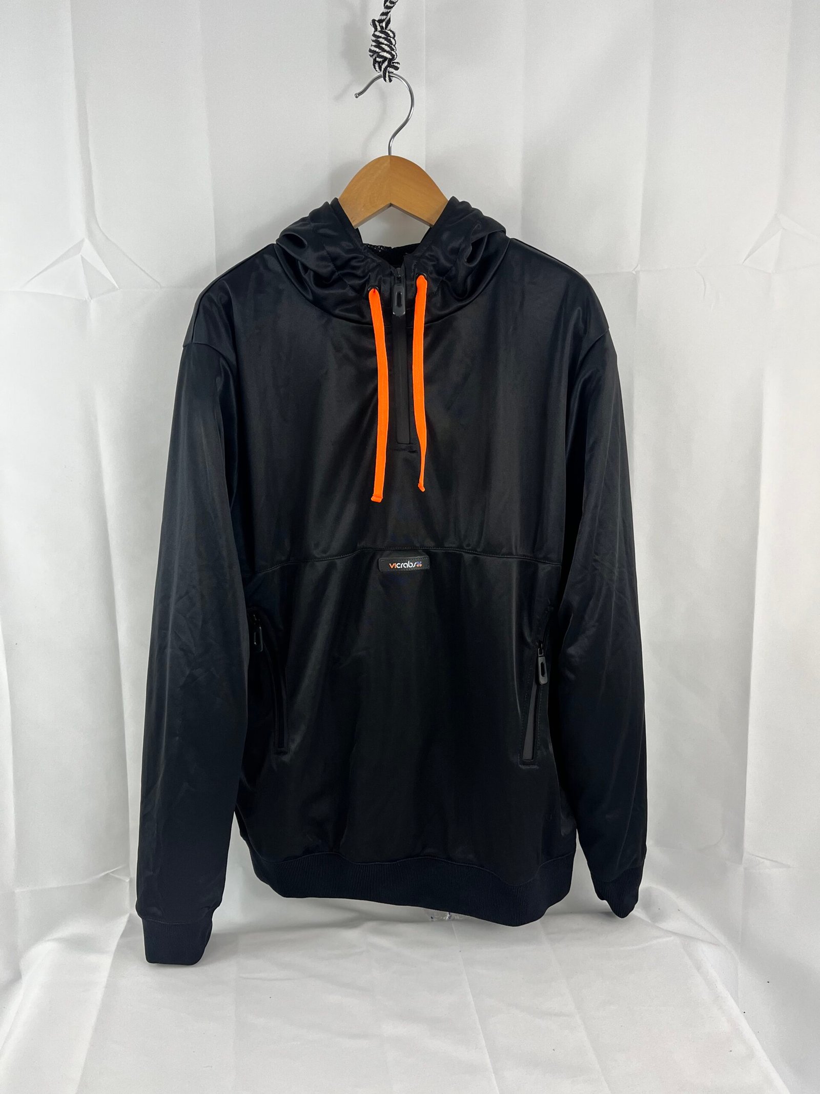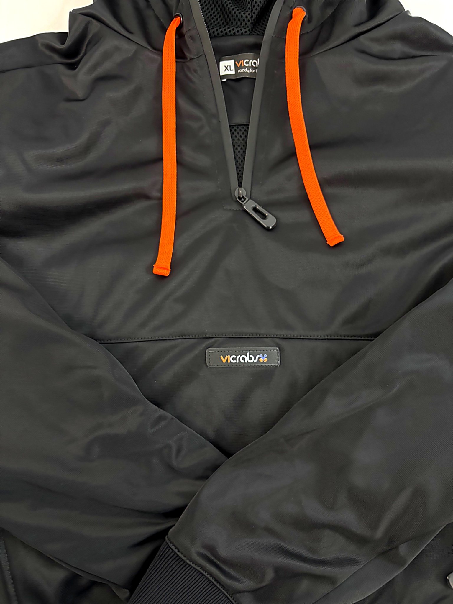 • Detalles de Contraste: Los cordones de la capucha en color naranja neón rompen la sobriedad del negro, aportando un toque de energía y visibilidad.